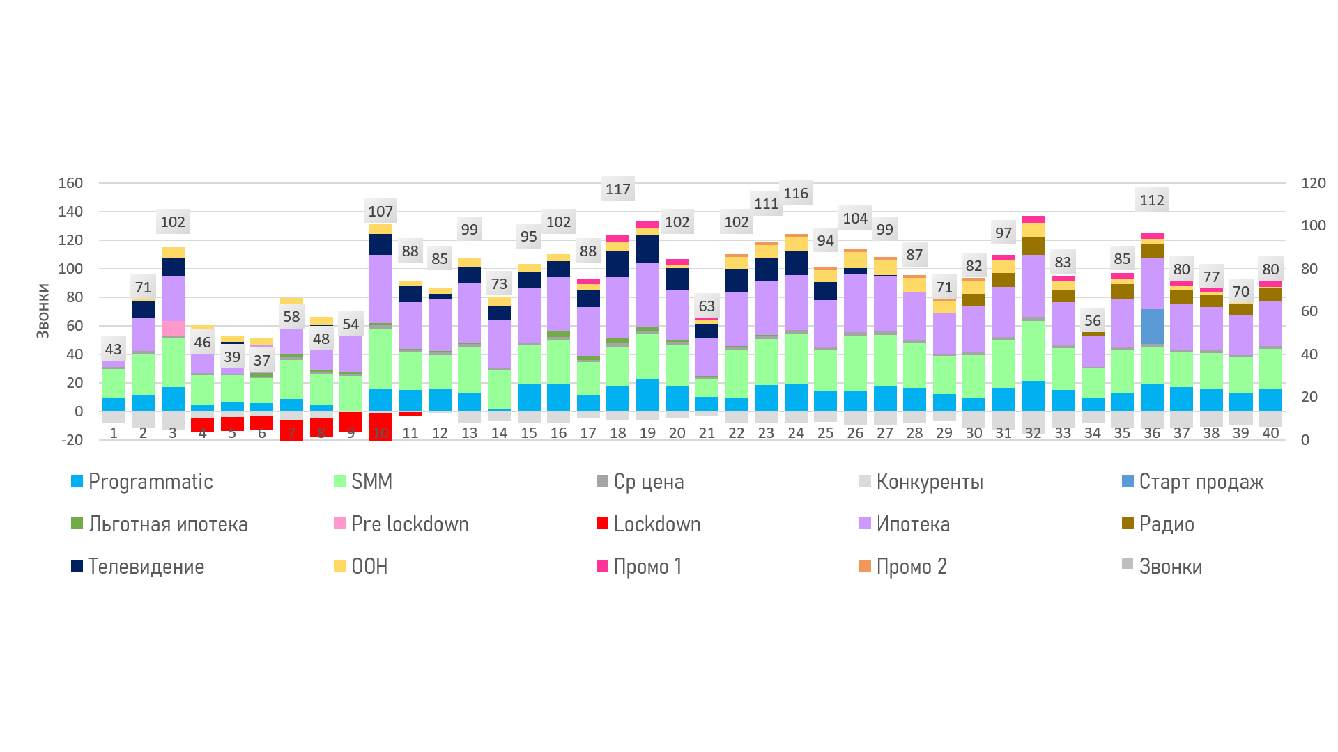Отчет показывает, сколько продаж приносят различные факторы. Учитывает отложенный эффект медиа, емкость каналов.